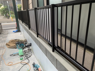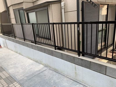 マンションブロック積みアルミフェンス取り付けの現場です。